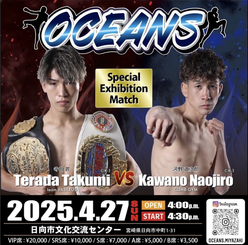 第6代K-1 WORLD GPフェザー級王者・寺田匠(左)がEXマッチで参戦