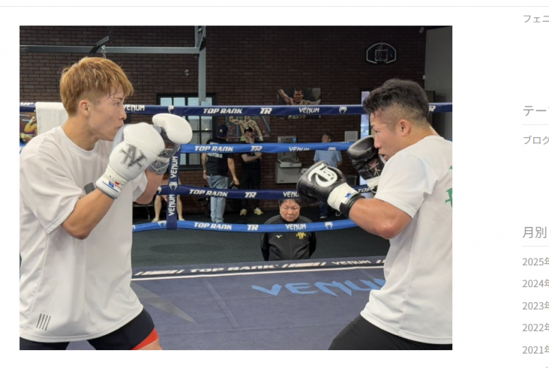拓真とマススパーを行う(大橋会長のブログより)