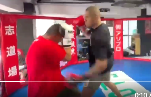 山口(左)はペレイラ(右)とガチスパーで石の拳を受けた(@890shota)