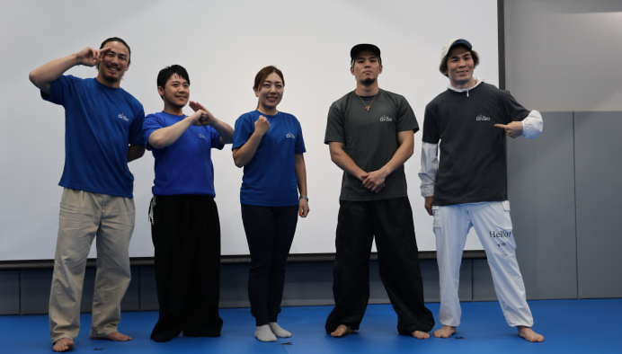 左から矢地祐介、石井東吾、宮里美香、原口健飛、レオナ・ぺタス