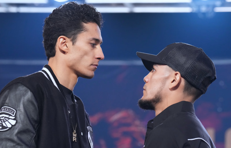 WBO世界フェザー級王者エスピノサ(左)と挑戦者バスケス(右)は、この身長差! 提供:Prime Video ©NAOKI FUKUDA