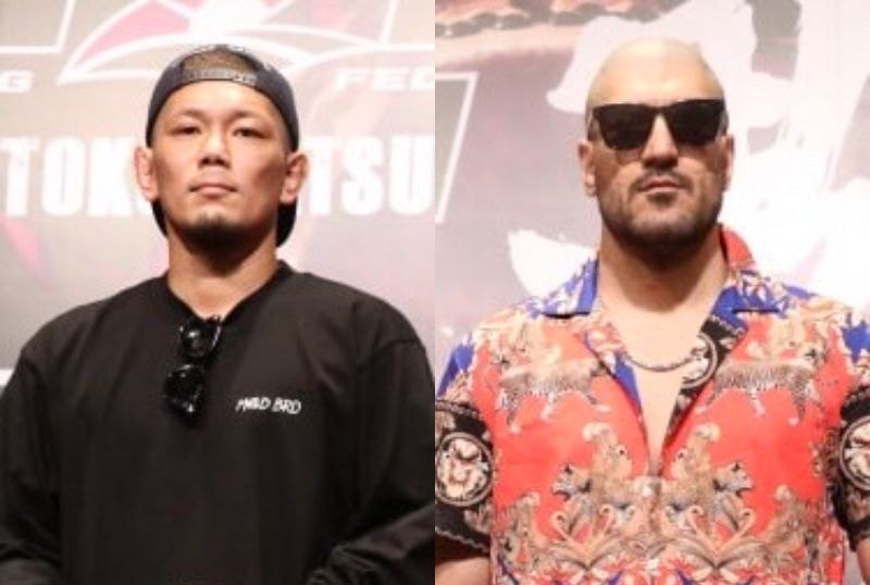 皇治(左)とカリミアン(右)が対決、あまりの体格差に騒然