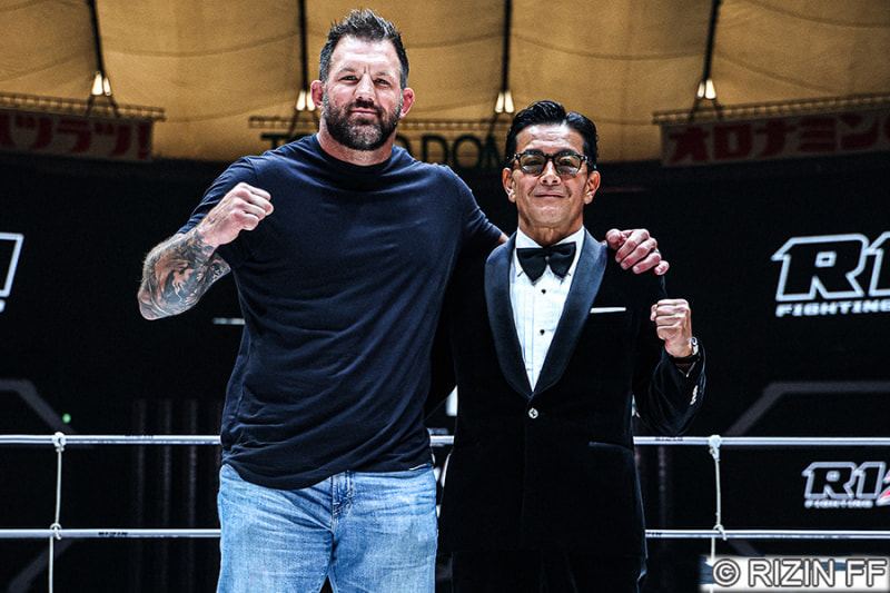 ライアン・ベイダー(左)がRIZIN参戦決定、榊原CEO(右)と肩を組む