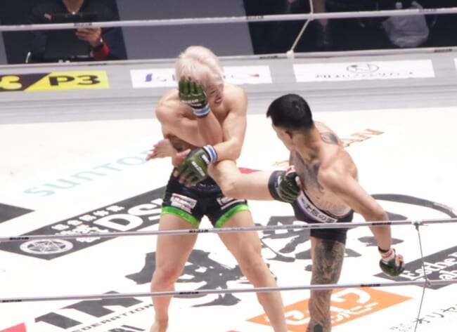 後ろ蹴りをヒットさせ