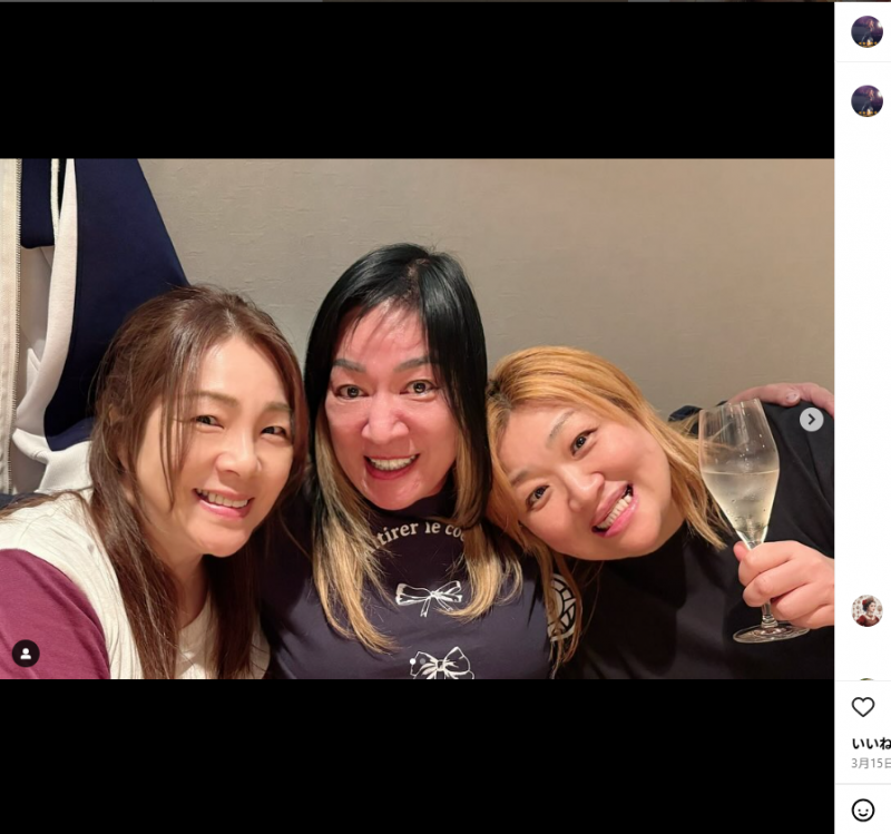 右からプロレスラーの井上京子、ジャガー横田、井上貴子(@takaco_inoueより)