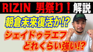 5月4日(日)東京ドームにて開催された格闘技イベント『RIZIN男祭り』の[フェザー級タイトルマッチ5分3R]でクレベル・コイケ(ブラジル/ボンサイ柔術)を右ストレートでKOして新王者となったラジャブアリ・シェイドゥラエフ(キルギス共和国/Ihlas)。この試合を見た大沢ケンジが、5日、自身のYouTubeチャンネルで「ヒョードル以来の衝撃」とコメントした。