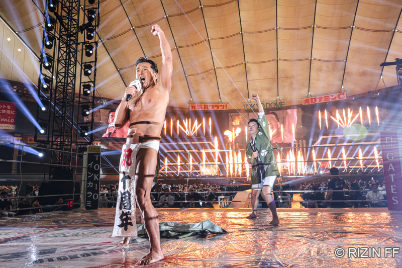 榊原CEO(左)がふんどし姿で東京ドームに登場!