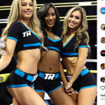 井上戦のラウンドガールを務めたシャネル(中央)ティアンナ(右) レイチェル(左)@toprankより