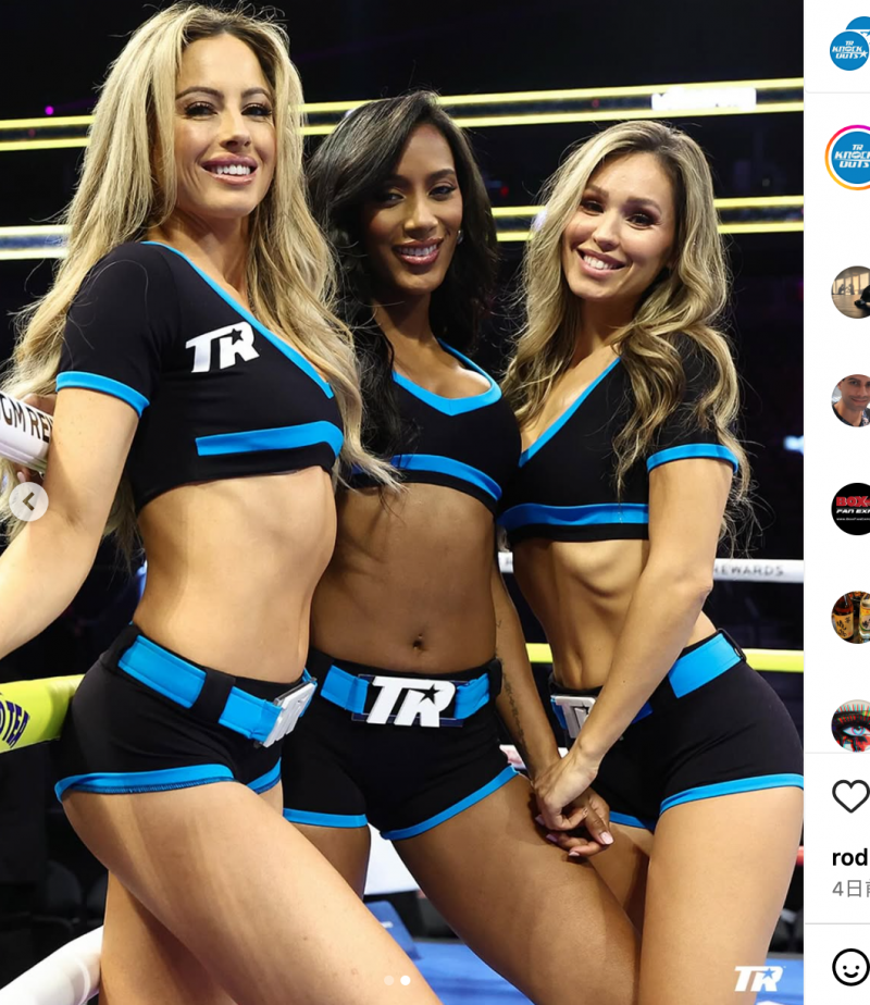 井上戦のラウンドガールを務めたシャネル(左)ティアンナ(中央) レイチェル(右)@toprankより