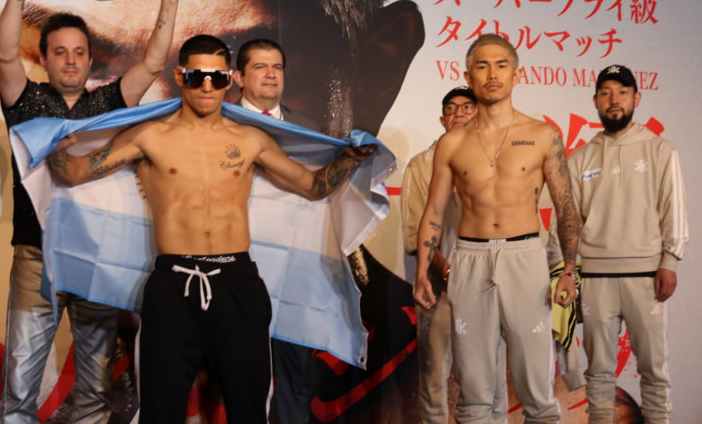 計量パスした井岡(右)とマルティネス(左)