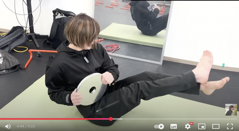 腹筋は足上げツイスト(24年3月 角田夏実YouTube)