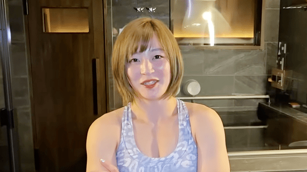 角田夏実、サウナではマッチョボディ、その後の試合では体重40kg差を乗り越え勝利(角田夏美Youtubeより)