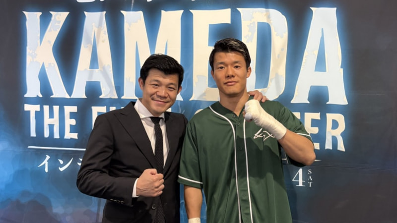 和毅(右)が兄である亀田興毅ファウンダー(左)と並ぶ