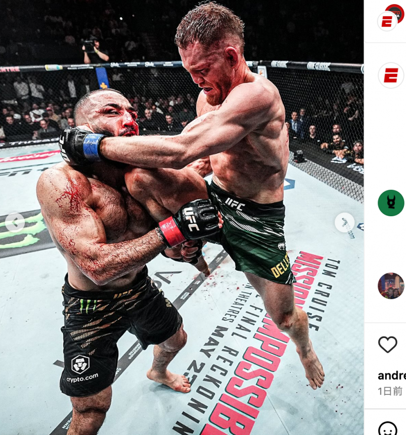 強烈なヒザ蹴り@espnmmaより