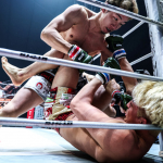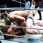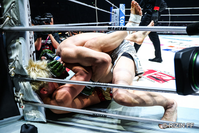 パスガードの動きで足を抜きにかかる朝倉(C)RIZIN