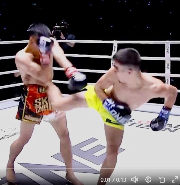 与座と対戦するエルブルース・オスマノフは、バックキックでパットサンレックからKO勝ち!(23年2月、@onechampionship)