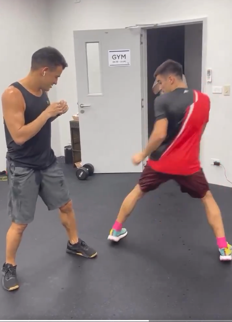 フェイントをかけつつ左足を相手の左側へ踏み込み(@mitchchilson)