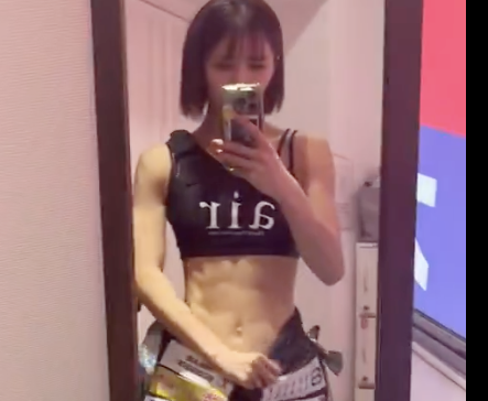 25年3月の菅原の割れた腹筋!ヘソが見える(菅原美優Xより)