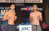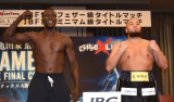 また、セミファイナルのIBF世界ミニマム級(47.62kg)タイトルマッチに臨む王者ペドロ・タドゥラン(フィリピン/王者)は47.4kg、前王者で同級4位の重岡銀次朗(ワタナベ)は47.6kgで計量パス。