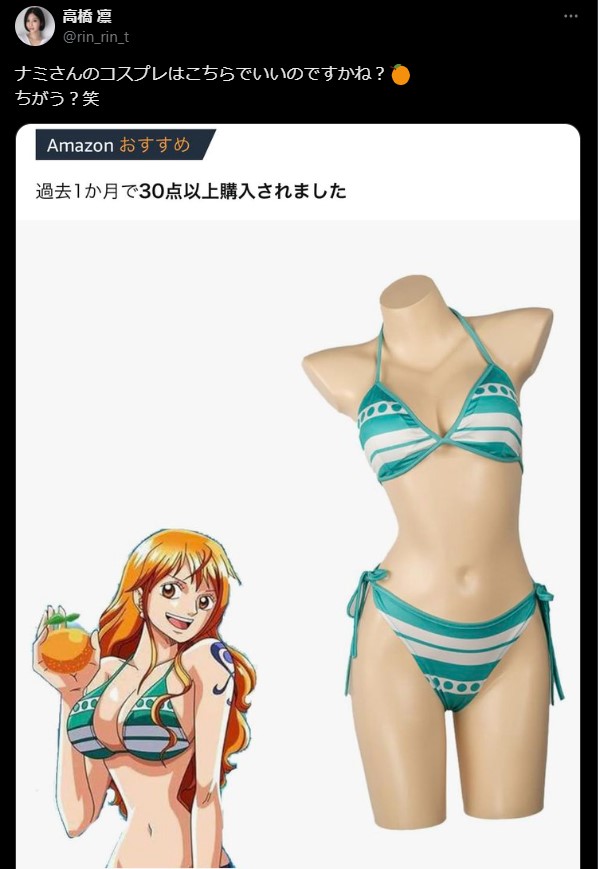 高橋は先日ナミのコスプレ衣装を探していた(@rin_rin_tより)