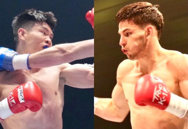王者フェン(左)が初V”美しき人狼”フェルドンク(右)を迎える (c)K-1
