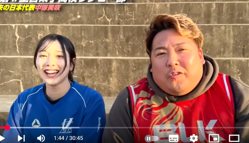 ノッコン寺田(右)は、ラグビー美女と動画で共演(『ノッコン寺田』YouTubeチャンネル)