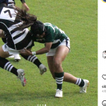 ノッコン寺田(右)は、ラグビー美女と動画で共演(『ノッコン寺田』YouTubeチャンネル)