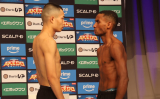 セミファイナル(第5試合)のバンタム級(53.52kg)で対戦する、同級3位の那須川天心(帝拳)は53.4kg、同級1位のビクトル・サンティリャン(ドミニカ共和国)は53.5kgで、両者とも下着を脱いで計量をクリアした。