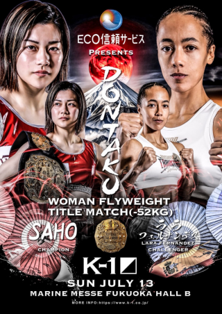 7月13日(日)マリンメッセ福岡B館にて開催される『K-1 DONTAKU』に、K-1 WORLD GP女子フライ級王者・SAHO(闘神塾)とスペイン強豪ララ・フェルナンデスとのタイトルマッチが追加された。SAHOにとって初の防衛戦となる。