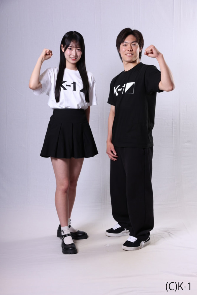 公式応援サポーターの百田汐里(左)とPR大使の黒川瑛斗(C)K-1
