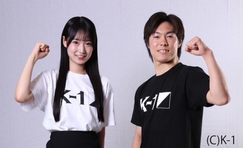 公式応援サポーターの百田汐里(左)とPR大使の黒川瑛斗(C)K-1