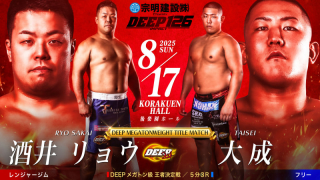 さらに[DEEPメガトン級王座決定戦 5分3R]として、酒井リョウ(レンジャージム)と大成(フリー)が激突。王者ロッキー・マルティネス引退による決定戦となる。両者は22年に対戦し、酒井が判定勝利している。