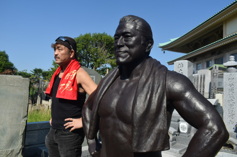 アントニオ猪木さんの銅像と並ぶ超人イリエマン