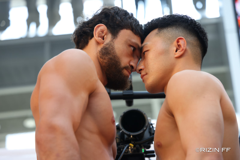 ケラモフ(左)が木村(右)に額をぶつけて睨み合い!