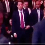 その背後、シークレットサービスが腰の拳銃に手を掛ける@HappyPunchより