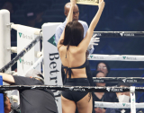 - カシメロ戦でラウンドガールを務めたRISABOOO(23年10月)