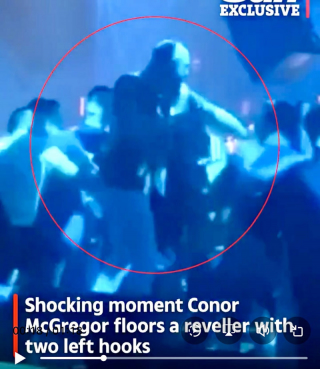 ザ・サン誌が最初に報じた映像によると、マクレガーはフロアの中央、一段高い場所から、下にいる男性と会話している。マクレガーは腰をかがめ聞いていたが、突然激高。左のパンチで男性を殴りつけると、1発目はうまく当たらなかったが、続く2発目がヒットし、男性は崩れ、群衆の中に倒れた。