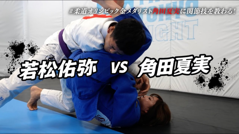 ONE世界フライ級王者・若松佑弥と柔道金メダリストの角田夏実がスパーリング(『若松佑弥YouTubeチャンネル』サムネイルより)