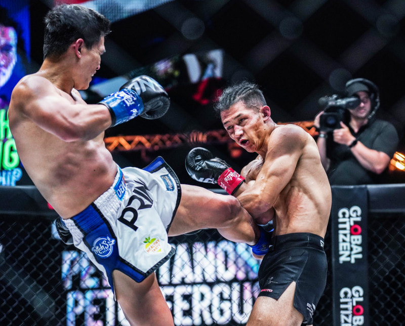 秋元皓貴にミドルキックを蹴り込むペッタノン(左)