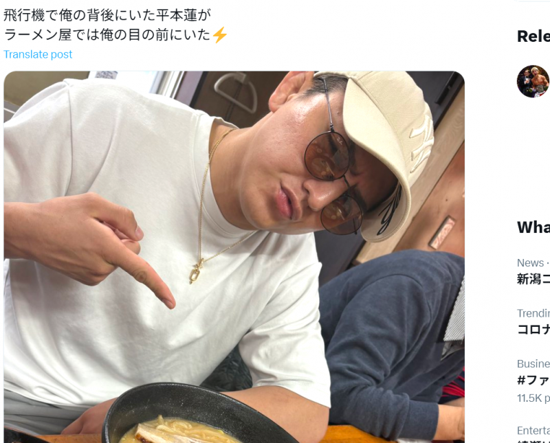 鈴木は北海道のラーメン屋で平本蓮が目の前にいたとXで報告(@Chihiro__0514)