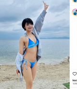 ▼【フォト】“もちもちほっぺ”美顔に!鍛えたボディにハイレグ水着、ミニのラウンドガール姿も