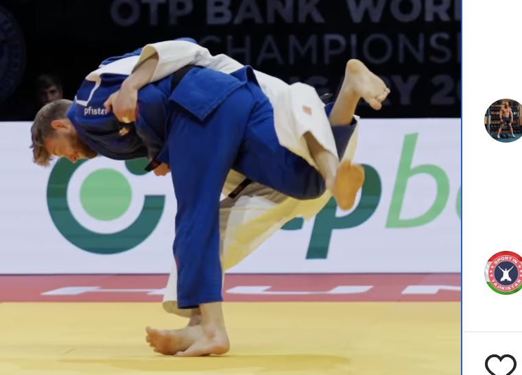 2、投げられ宙に浮き回転する力を利用し、王者の足を払う!(@judogallery)