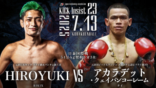 7月13日(日)に東京・後楽園ホールにて開催される、ジャパンキックボクシング協会認定『KICK Insist 23』では、本戦13試合とオープニングファイト1試合が予定されている。