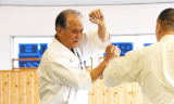 - 山崎照朝先生が筆者に受けを伝授。撮影は高倉健の専属カメラマンだった山川雅生さんだ