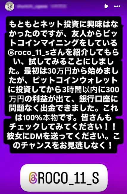 返信し、電話番号を教え、乗っ取られた空手関係者の画面。連日リールから投資の甘い誘いが続く