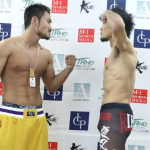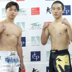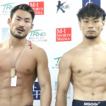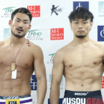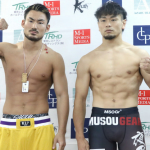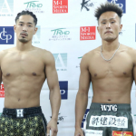 初のOFGマッチに臨む神保(左)と夜叉猿はムキムキボディで計量パス