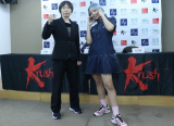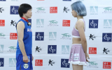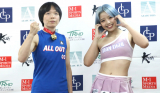 【Krush】“リアル春麗”木村萌那、ピンクのミニ衣装で計量パス!鍛えた脚&肩筋を見せる