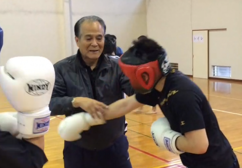 試合のテクニックを教える山崎氏(日大キックボクシング部提供)
