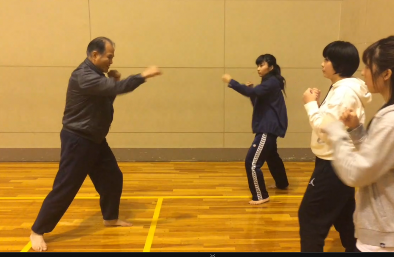 初心者にパンチを教える山崎氏(日大キックボクシング部提供)