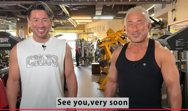 ムキムキな魔裟斗(左)と角田信朗(魔裟斗Youtubeチャンネルより)